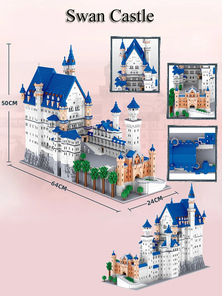 Micro mini bloques enormes del castillo de piedra de cisne: juego de construcción desafiante de 10000 piezas, rompecabezas 3D de alta dificultad, logros definitivos, pieza decorativa genial, asesino del tiempo perfecto
